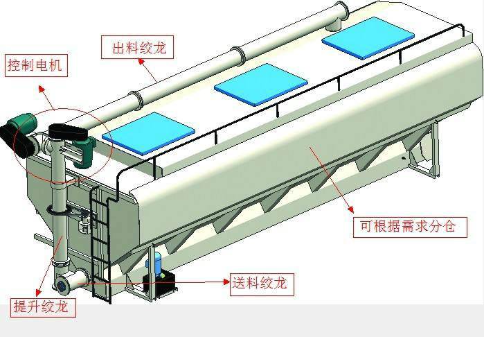 上裝罐體:罐體材質(zhì)采用4mm優(yōu)質(zhì)碳鋼板,整車3條絞龍,由3個5.5KW電機380V外接電源帶動,頂部絞龍用液壓控制舉升,可左右旋轉(zhuǎn)180°。罐體內(nèi)分為叁個倉,可以獨立控制各分倉卸料順序和速度。(備注:此報價為標配,國產(chǎn)電機,德力西電柜)