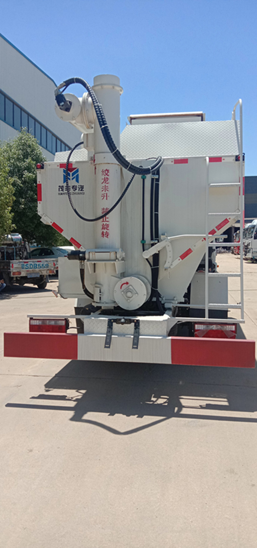 可獨(dú)立控制各分倉卸料順序和速度,整車3條蛟龍(底部水平絞龍、尾部垂直絞龍、頂部卸料絞龍),由取力器經(jīng)車輛變速箱取力后,將動(dòng)力傳動(dòng)至高壓油泵以驅(qū)動(dòng)液壓系統(tǒng)帶動(dòng)各絞龍工作,或者由3個(gè)5.5kw 380v電機(jī)帶動(dòng)各絞龍工作,頂部絞龍液壓控制舉升,可左右旋轉(zhuǎn)180°此車公告+環(huán)保+燃油齊全,全國上戶無憂!